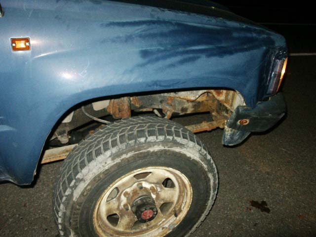 Aurinko oli jo laskenut ja pihalla vallitsi läpitunkematon pimeys mutta onneksi varasin mukaan taskulampun. Heti puolen jälkeen ulkoa kuului tuttu ronksutus. Ilmiselvästi pihalle tuli joku ontuen käyvä dieselauto. Havainto olikin oikea, sillä pihalla oli tumma pick-up ratissaan noin 80 vuotias vaaleahapsinen herrasmies. Siinä se sitten oli. Ikäisekseen normaali, ruosteeton ja teknisesti kunnossa oleva Hilux. Kuva puhukoon puolestaan:
