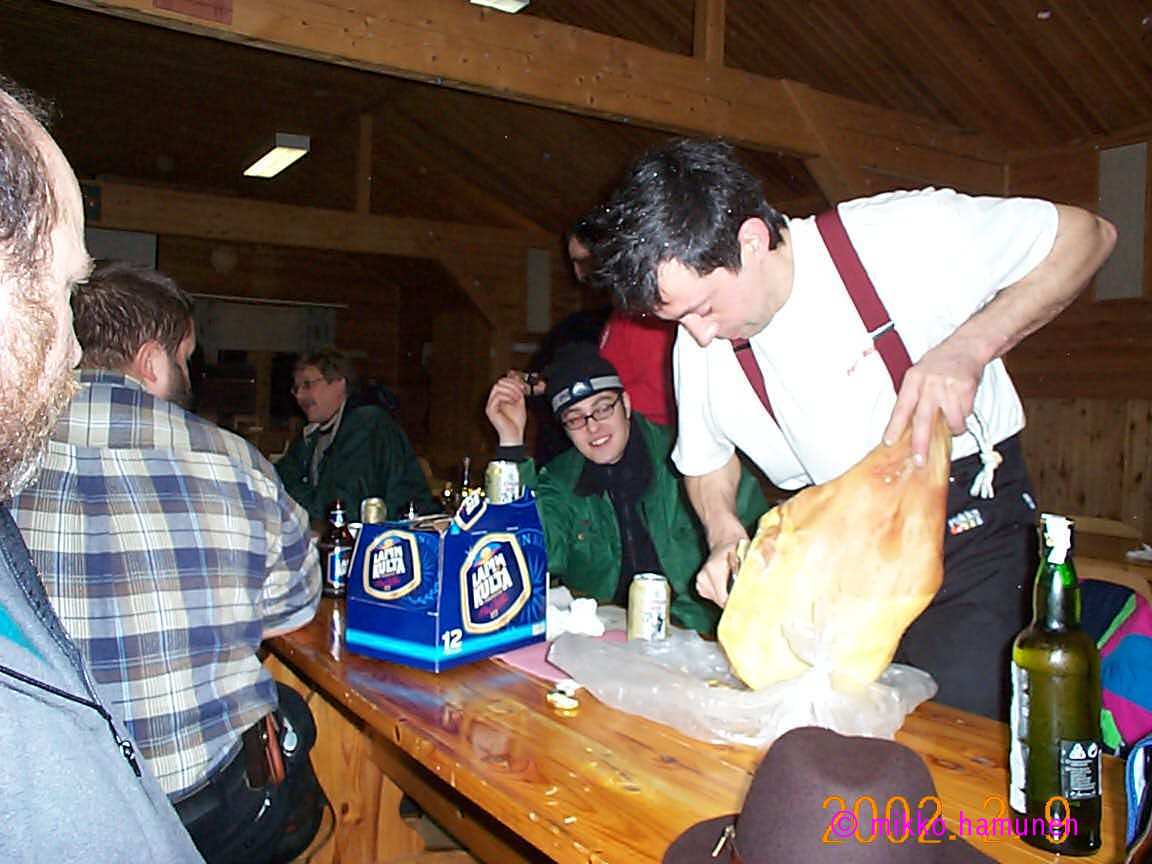 Espanjalaisilla oli omat eväät mukana. Maistiaisia ilmakuivatusta kinkusta kärttää myös Keskikorsun Tuomas. Samaisen kinkkulajin ovat tehneet tunnetuksi italialaiset pääministeri Silvio Berlusconi johdolla. Berlusconi käytti aseenaan mm. Parman kinkkua hänen hakkuessaan suomalaisten ruokatarjontaa kun EU:n elintarvikeviraston sijaintipaikasta väännettiin kättä..