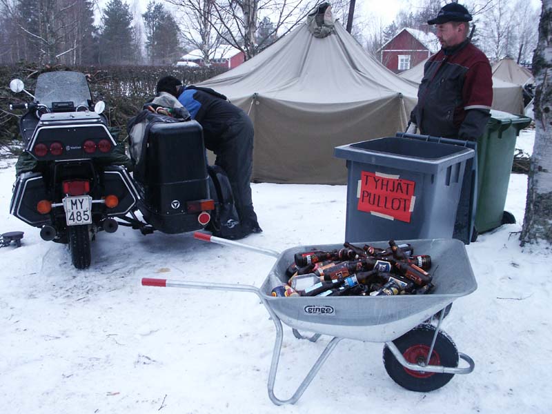 Usein kysytään talvimotoristin ajovarusteista. Saunan pukuhuoneessa tehty tutkimus ajosaappaista ja niiden hankintapaikoista antoi mielenkiintoisen tuloloksen. Saapas, hankintapaikka ja hinta: Saapas Kenkä Matti - , Power boots Vääksyn Kone -, huopasaapas Lahden pultti ja teräsrakenne 16 , - turkissaappaat 10 , Kamik Hong Kong 49 , Kamik Hyvinkään ? 59 , saapas Maksimarket -, saapas Sievin kenkä 91 , turvasaappat Lidl 15 . Kovin ovat outoja ratkaisuja, eivätkä ole ainakaan vertailutestien kärkipaikoilta jääneet mieleen. Mutta pääasia onkin, että varpaat eivät palele.