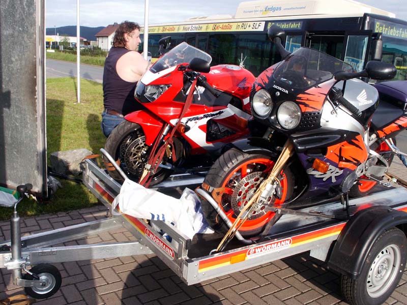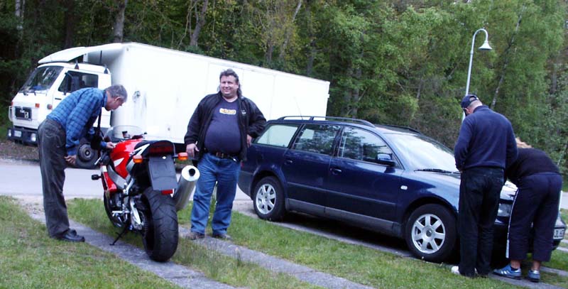 Noin 120 km ajon jälkeen tapaamme Klausin jonka kanssa olen sopinut kaupoista Hondan CBR 900 RR -02:stä. Todellinen namupala, käytännössä uusi pyörä käytetyn hinnalla. Kuvia tulossa lisää.